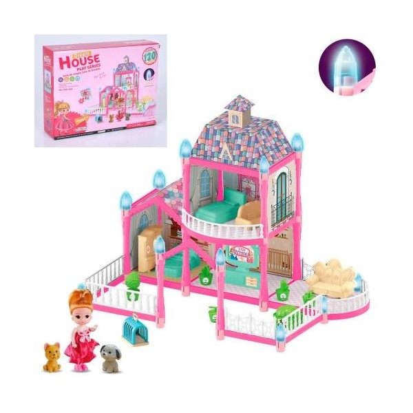 >Дитячі товари для дівчаток>Будиночок 556-45 A поверхи-2, 46-30-в41 см, світло, меблі, лялька 10см, тварини, будка, 120д ет, на батарейках (таб), в коробці