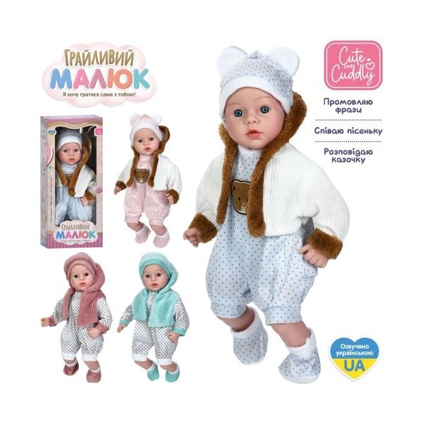 Лялька GD 0002 I UA Грайливий малюк, пупс, 42см, м'яконабивний, музика-звук (укр), казка, пісня, 4 види, на батарейках (табл), в