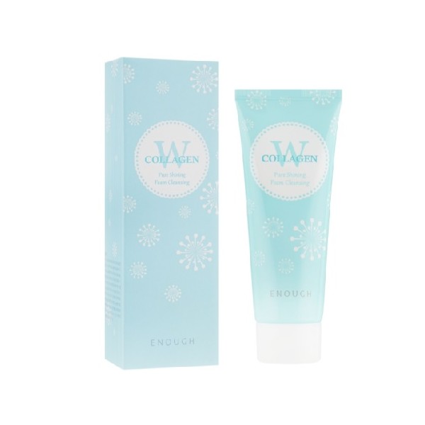 Піна для вмивання W Collagen Pure Shining Foam Cleansing від бренду **ENOUGH** — це м’який очищувальний засіб, збагачений морським колагеном, який ефективно видаляє забруднення та макіяж, не порушуючи природний баланс шкіри. Піна глибоко очищає пори, при цьому роблячи шкіру м’якою та зволоженою.