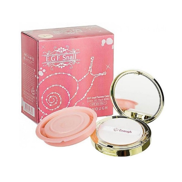 Компактна пудра з муцином равлика EGF Snail Twoway Cake 13 від бренду **ENOUGH** - це багатофункціональний засіб для макіяжу з омолоджувальним ефектом. Пудра містить муцин равлика і EGF (епідермальний фактор росту), які сприяють регенерації шкіри, покращують її еластичність і допомагають розгладити дрібні зморшки.