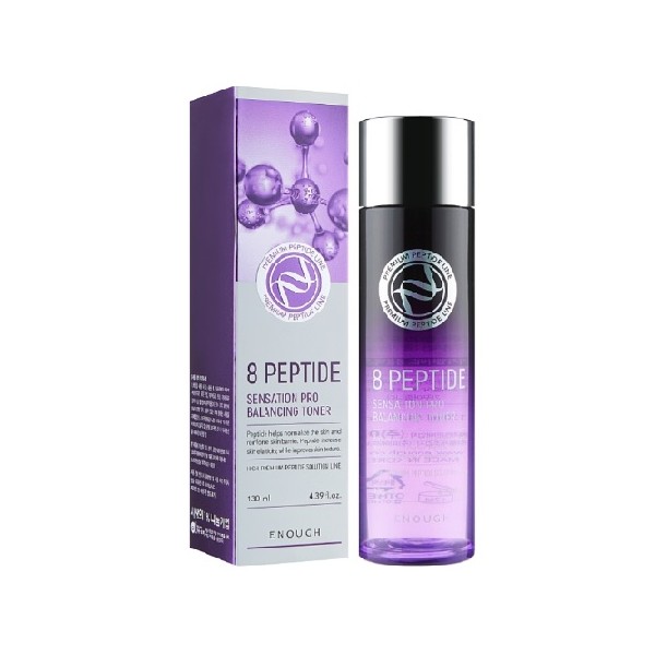 Тонер для обличчя антивіковий пептидний Premium 8 Sensation Pro Balancing Toner від бренду **ENOUGH** — це ефективний засіб для відновлення, зволоження та омолодження шкіри. Завдяки пептидам у складі, тонер допомагає покращити еластичність шкіри, стимулюючи процеси регенерації та зменшуючи видимість зморшок.