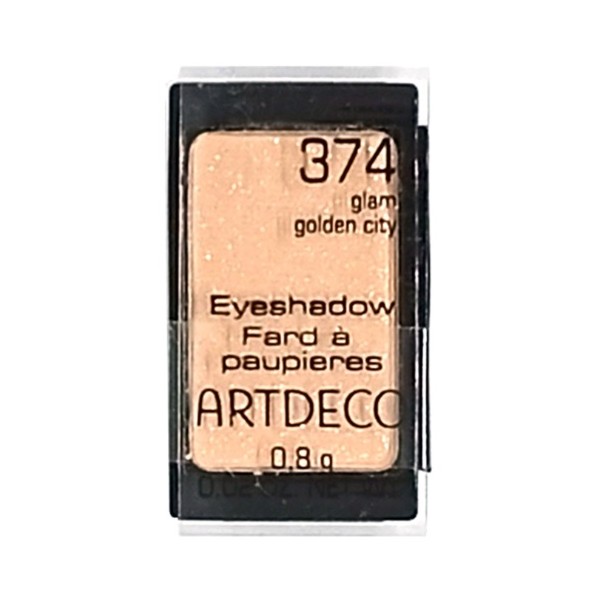 ARTDECO Pearl Eyeshadow №374 Glam Golden City — вишуканий світло-золотий відтінок з м'яким перламутровим сяйвом, який надає макіяжу ефект доглянутої шкіри і благородного glow. Колір універсальний і «освіжаючий»: робить погляд більш відкритим і візуально підкреслює форму очей.