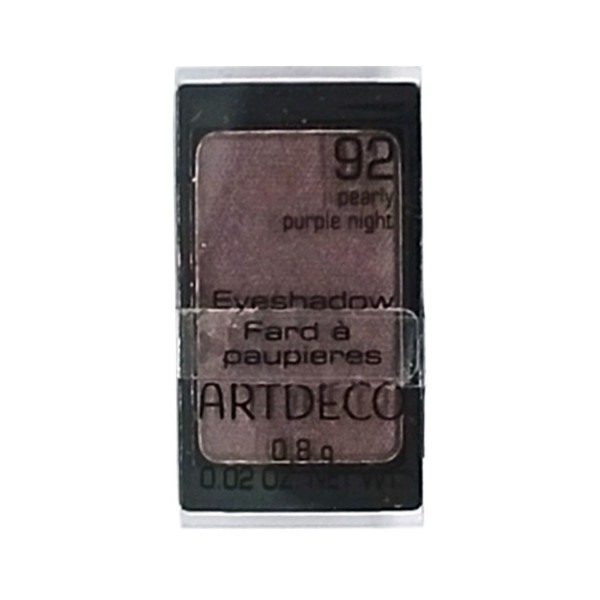 Artdeco Pearl Eyeshadow — компактні перламутрові тіні для повік з насиченою пігментацією і шовковистою текстурою. Відтінок 92 Pearly Purple Night — глибокий темно-фіолетовий колір з холодним перламутровим сяйвом, ідеально підходить для виразного вечірнього макіяжу і smoky eye.