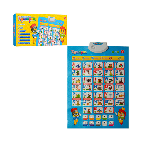 Плакат 7031 UA навчання, із звуковими і музичними ефектами(на українському ящику), букви, колір, скорогов, працює на батарейках.